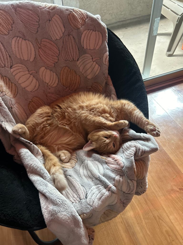 Meanwhile enjoy a pet pic! This is my sophomore year roommate’s cat, Jenga, aptly named because she would wobble and fall over like this all the time.